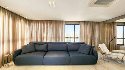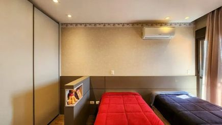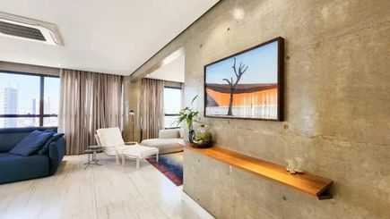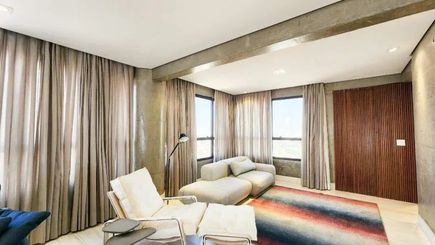 Assinado pelo renomado arquiteto Jorge Bomfim, este apartamento une design moderno, móveis planejados e eletrodomésticos de alto padrão.