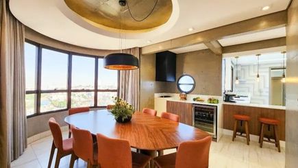 Com 3 suítes incríveis com terraço, incluindo uma suíte máster ampla e elegante, o imóvel oferece um living imponente para 3 ambientes, integrado à varanda gourmet, perfeito para momentos especiais com a família e amigos. A cozinha é equipada, o lavabo refinado e o elevador privativo garante total exclusividade. São 4 vagas de garagem para seu conforto.
